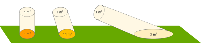 La puissance radiative réelle reçue en un endroit peut varier par rapport à cette constante solaire, en fonction de l’angle d’incidence des rayons solaires. En effet, la variation de l’angle d’incidence des rayons modifie la surface de réception de l’énergie, et modifie donc la puissance radiative reçue.